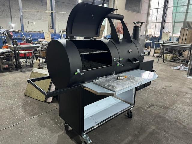 Смокер - професійний гриль, який можна одночасно використовувати для приготування страв на грилі і для копчення. Виготовлений з чорної або нержавіючої сталі товщиною 4-8мм. Решітка - нержавіюча сталь. Виробляється під замовлення в стаціонарному або мобільному виконанні.