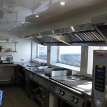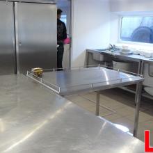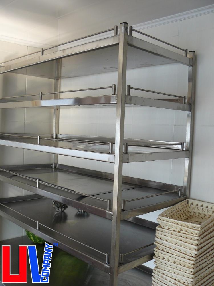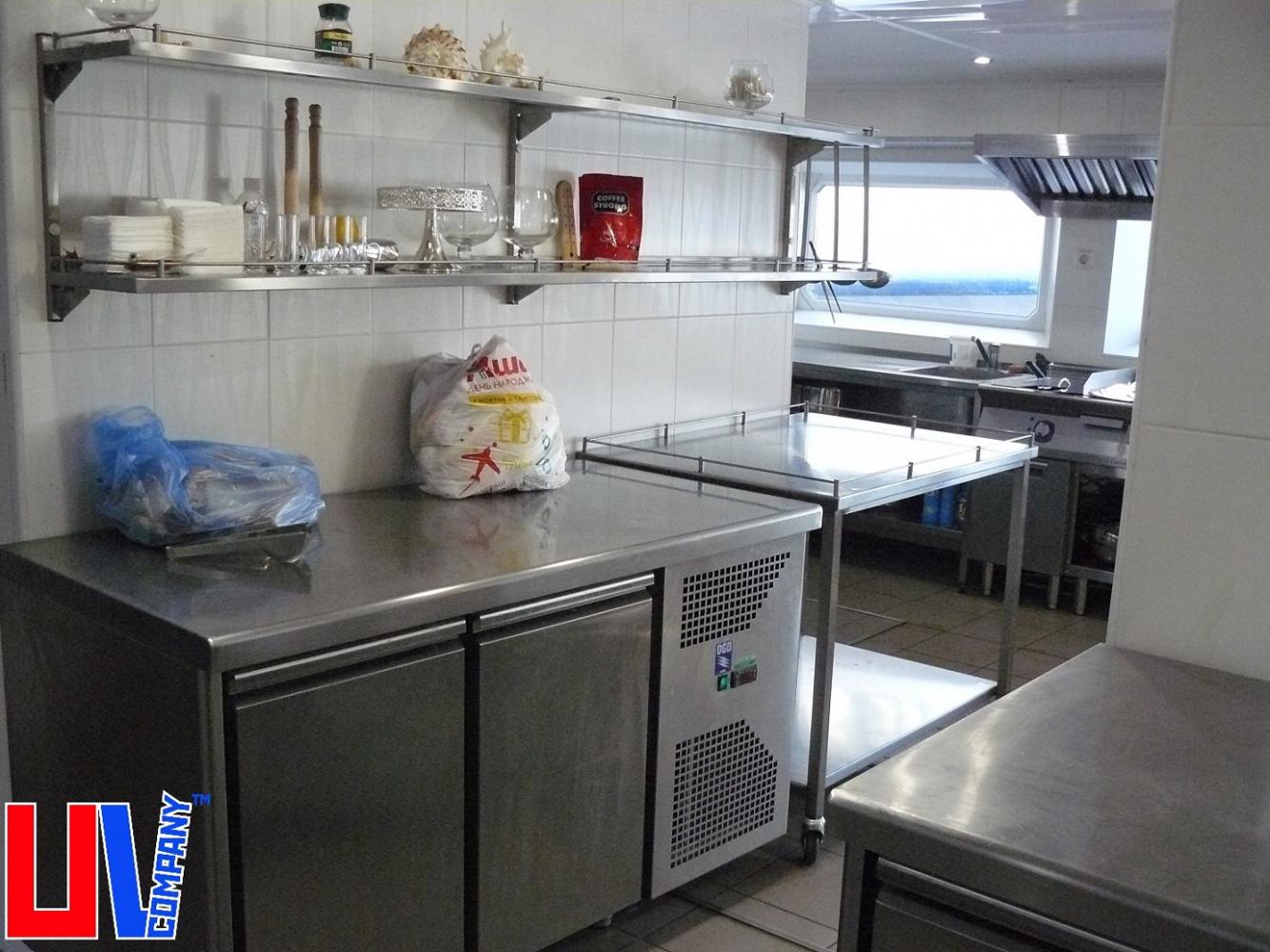 Our company manufactures galley auxiliary equipment for ships and yachts. The material used for manufacture is the following: AISI 304 stainless steel. All the horizontal surfaces are provided with the side guards, and fixing to the floor is provided.