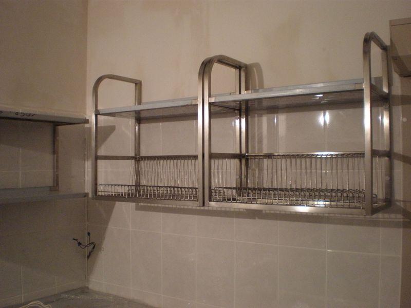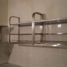 Our company manufactures the following articles either of standard dimensions or customized ones: kitchen shelves, shelves for drying tableware, special shelves (for an equipment), spice cupboards, shelves for detergents, panels for accessories, overhead cupboards.  The articles are made of food-grade stainless steel.