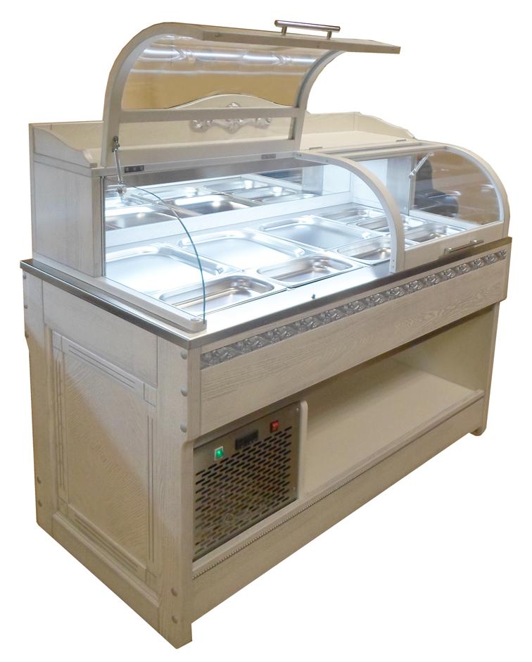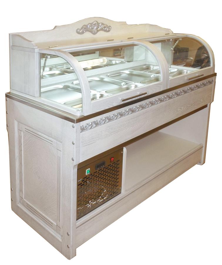 Серія «Buffet EXCLUSIVE» призначена для розміщення в залі ресторану під стіною або колоною, звільнивши зал для обідніх столів і вільного переміщення відвідувачів. Виготовляється з масиву дерева твердих порід, нержавіючої сталі, скла. Виріб може містити елементи декору.